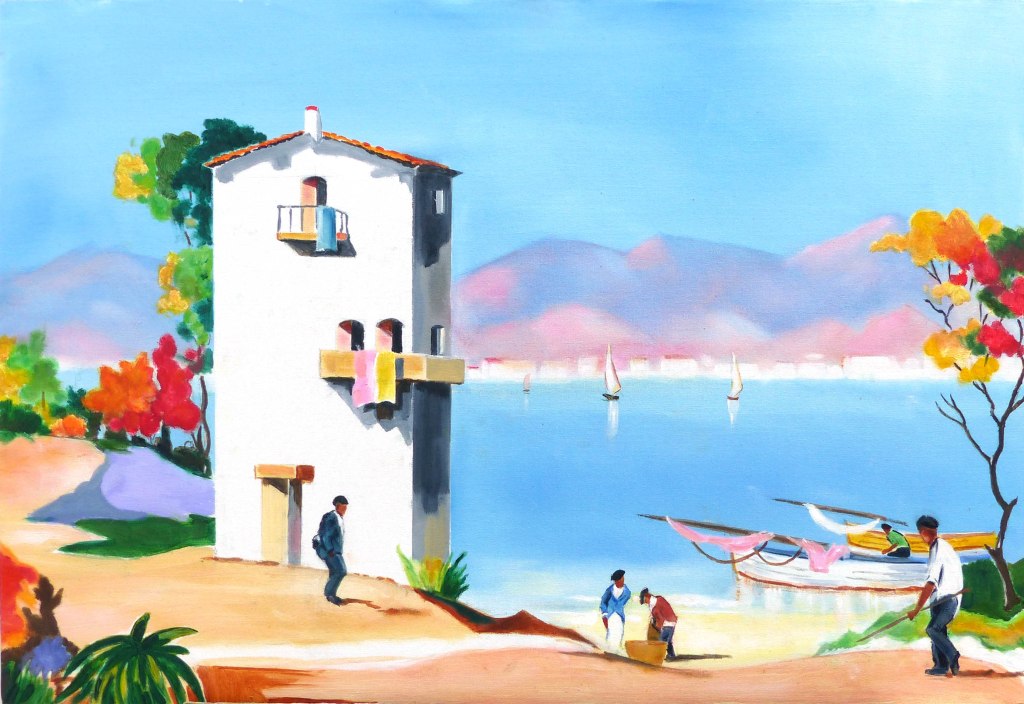 Ref: X0079. ‘Le Village’. Giclee Print on gallery quality art paper 308gsm. Image Size: 25.5cm x 38 cm. Price: £65.00 (VAT included + free delivery UK